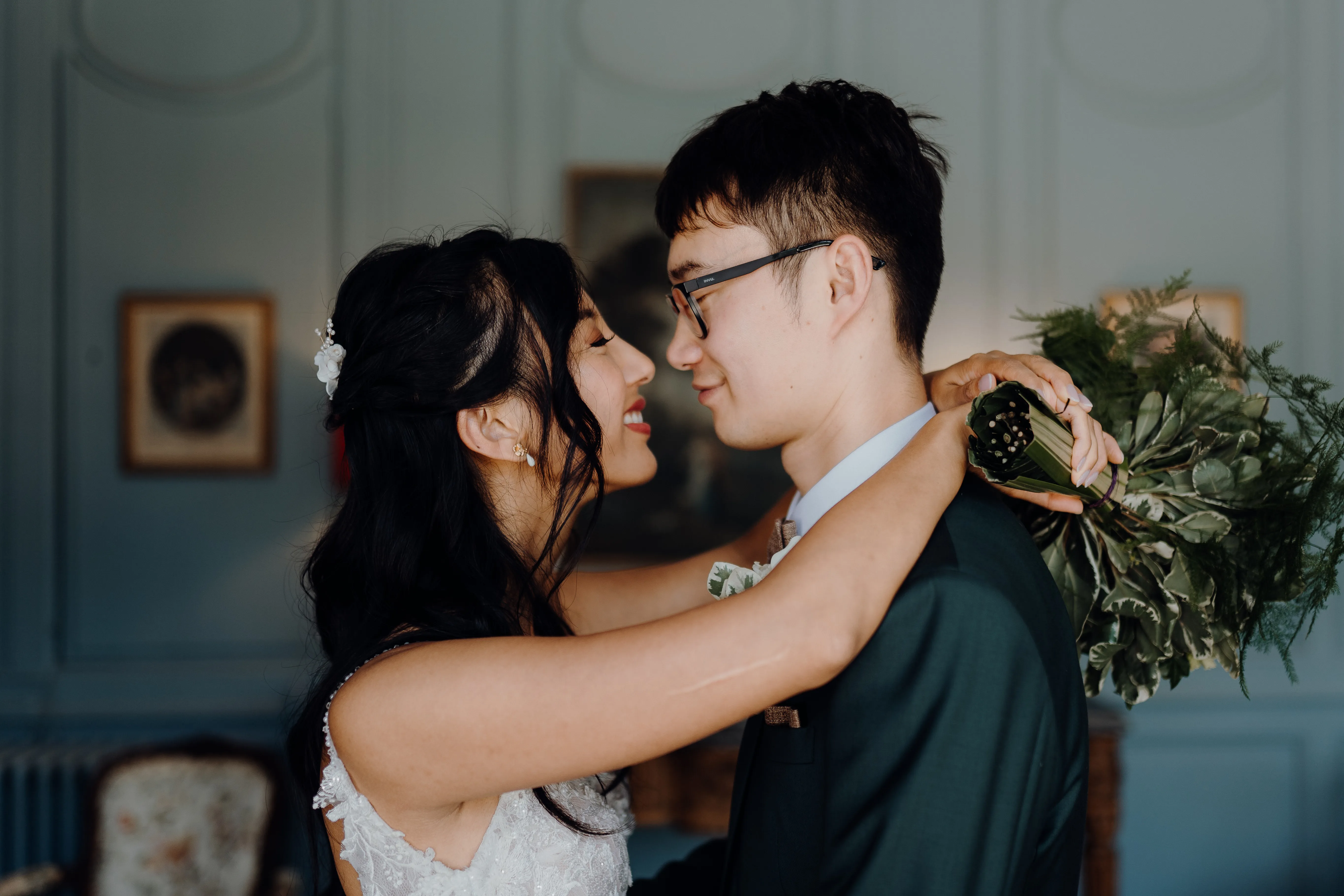 Un moment de pure magie où la précision de l'esthétique mode rencontre l'émotion sincère d'une union intemporelle.